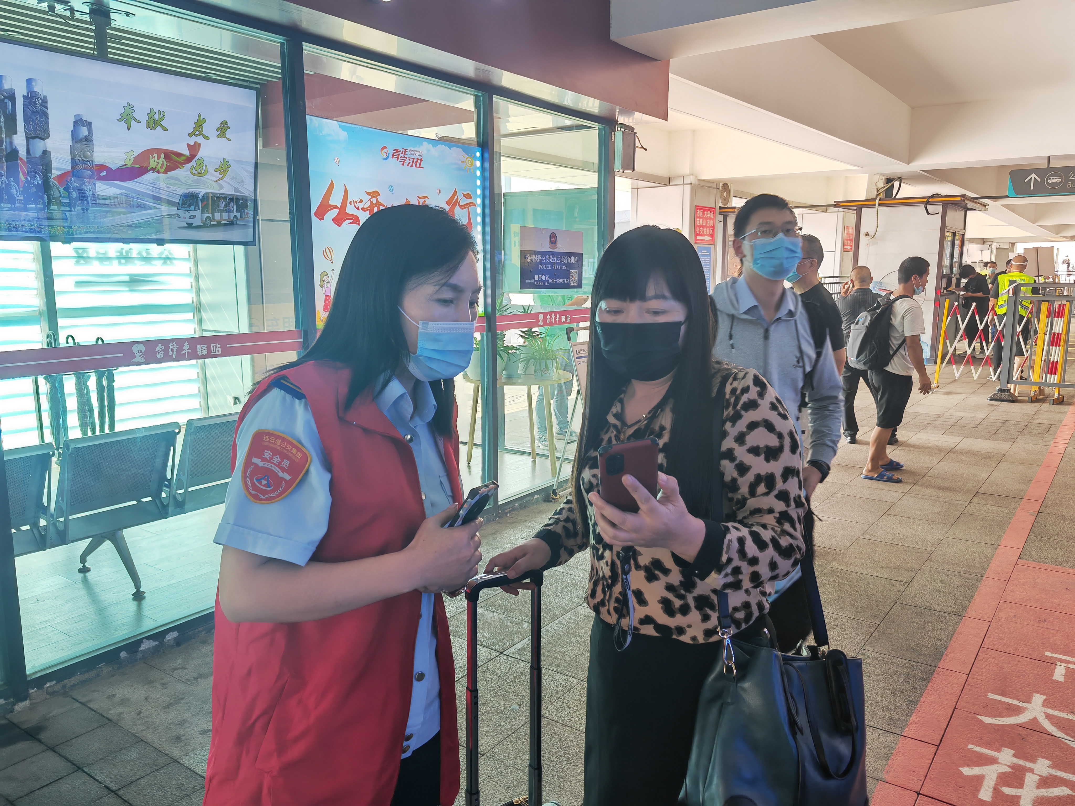 早上9點左右開始,出站客流呈上升趨勢。公交事業(yè)一部分別安排管理人員及與 “雷鋒車同行”旅游示范線駕駛員師傅們在出站口、咨詢臺及公交站臺等客流集結(jié)點進行文明綠色出行引導(dǎo)。針對大專院校新生首次不知如何乘車、公交出行防控碼首次如何登陸等問題,公交事業(yè)一部通過乘車方向提示牌、現(xiàn)場指導(dǎo)等形式高效引導(dǎo)乘客前往火車站B區(qū)乘坐公交車。