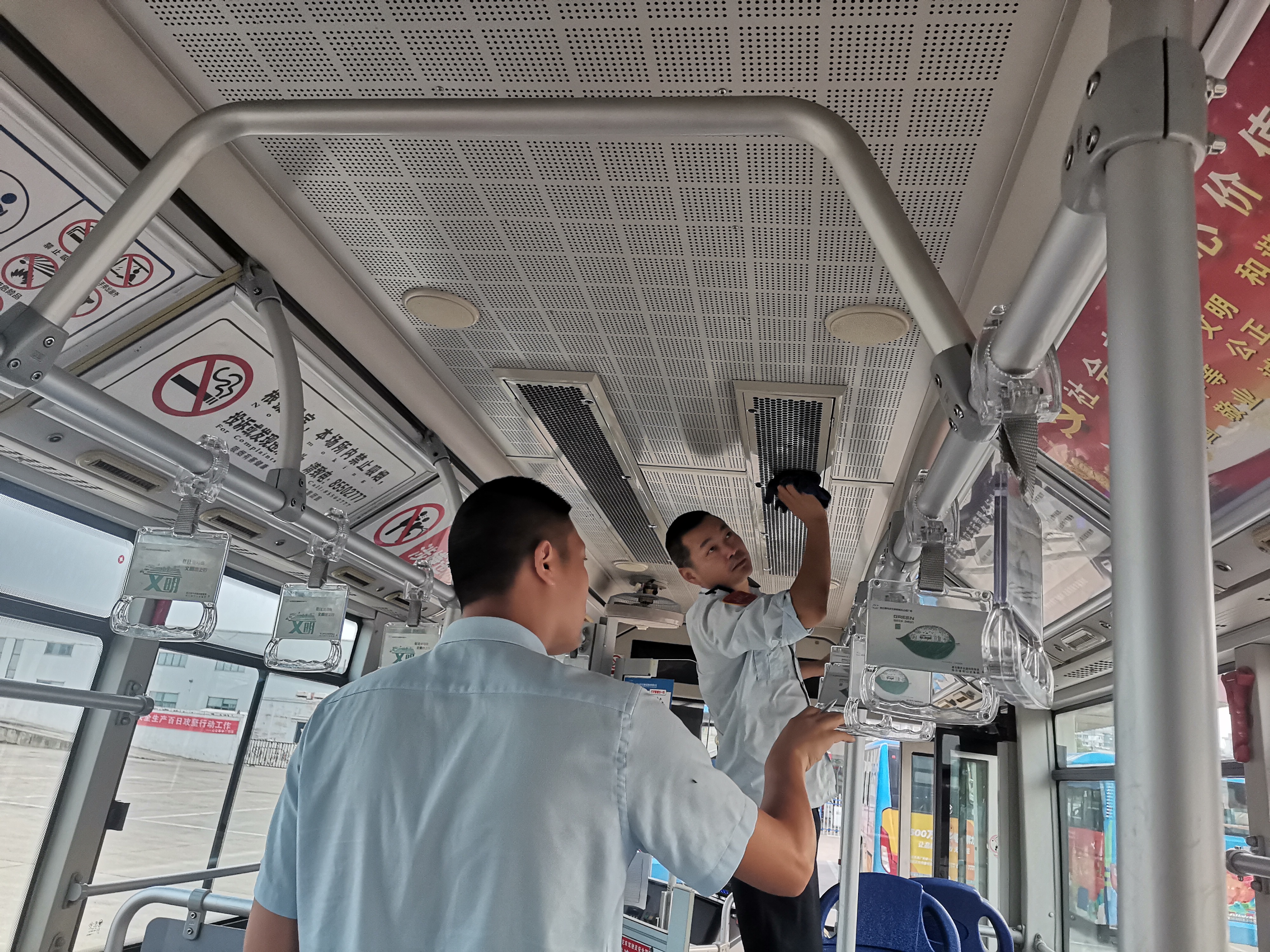 為扎實開展此次創(chuàng)文大排查大整治活動,首先,公司召開專題會議,按照線路、場站責任人,對照創(chuàng)文標準作專門要求。其次,各責任人依據(jù)創(chuàng)文標準進行逐車逐項進行全面排查。排查中,發(fā)現(xiàn)部分車輛拉手、風扇、空調出風口較臟,部分車輛站間牌、車身廣告存在問題,針對檢查中出現(xiàn)的問題,檢查人員都認真做好記錄,能及時整改的當場整改,不能及時整改的認真做好記錄并及時上報。檢查現(xiàn)場,駕駛員師傅、管理人員忙得熱火朝天,車輛一到站就開始打掃車廂內外衛(wèi)生,徹底打掃衛(wèi)生死角。