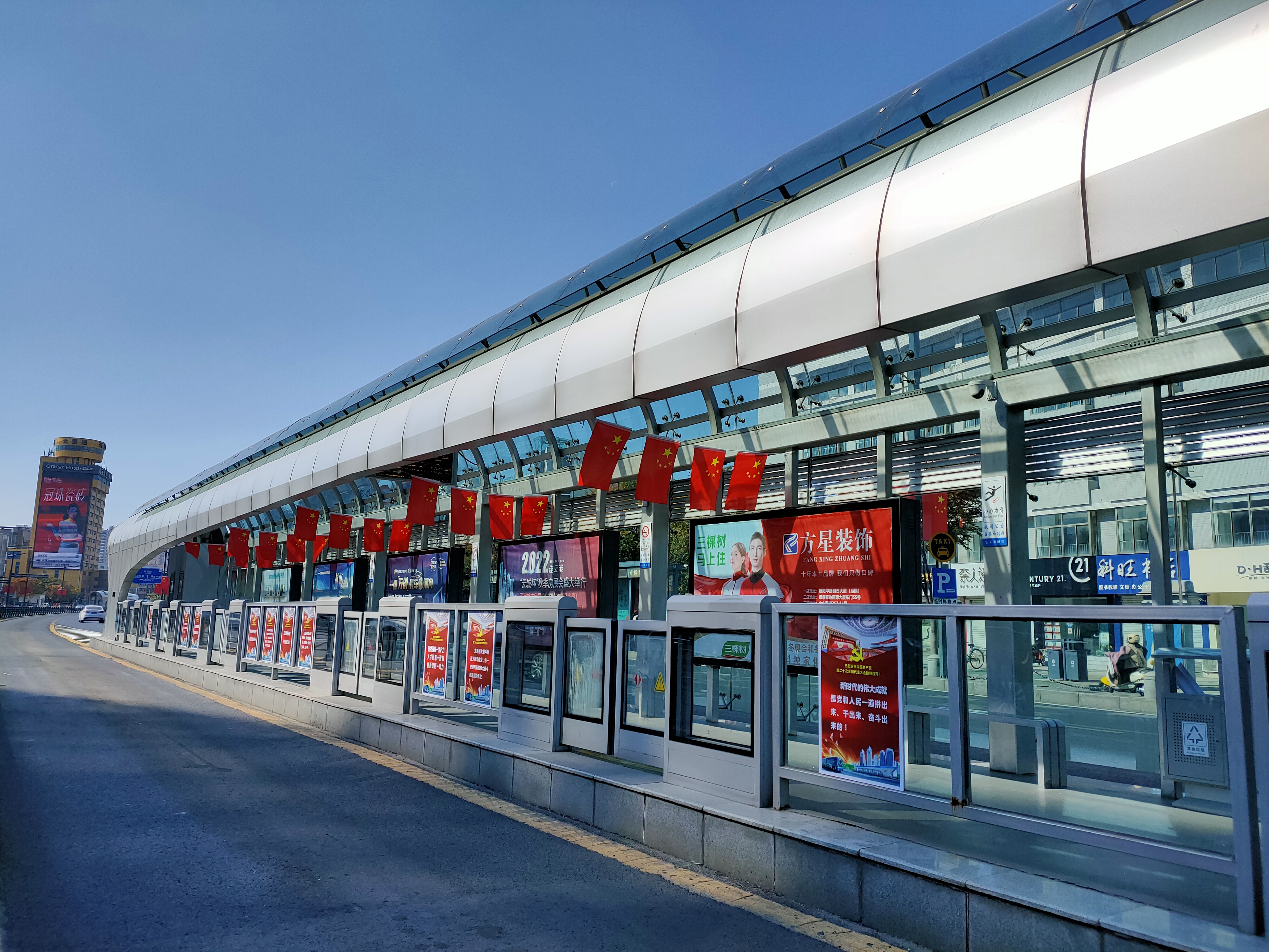 隨著黨的二十大勝利召開,習(xí)總書記的講話鼓舞著每個(gè)公交人。10月19日,位于市區(qū)主干道上的BRT站臺(tái)出現(xiàn)了黨的二十大會(huì)議金句,在川流不息的車流中顯得喜慶耀目。