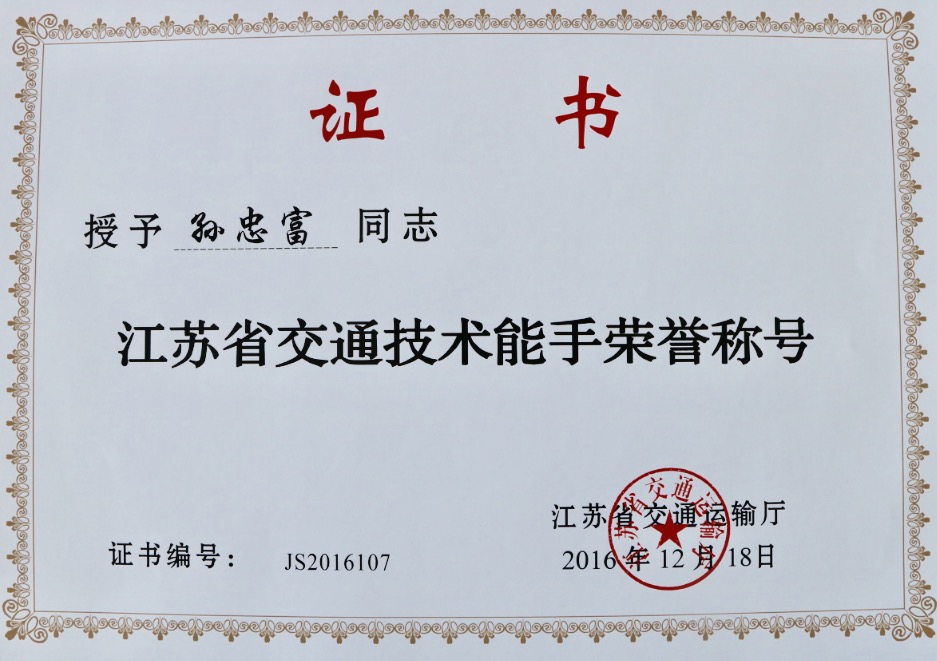 近日,公交集團張強、孫忠富、于緒林被江蘇省交通運輸廳授予第三批“交通技術(shù)能手”榮譽稱號,這是繼樊燕飛獲此項榮譽后,又有3位同志獲此殊榮。