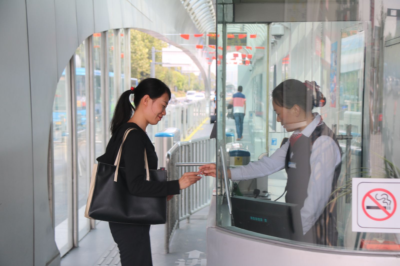 作為BRT的一名站務(wù)員,看到身邊的文明在悄悄的發(fā)生,心中充滿(mǎn)了一種喜悅和自豪。想起以前,乘坐公交車(chē)時(shí),人們一擁而上,不排隊(duì)的現(xiàn)象經(jīng)常發(fā)生,前推后擠,身材瘦弱的人總會(huì)被擠倒,上車(chē)后車(chē)廂內(nèi)充滿(mǎn)了喧嘩與吵鬧,沒(méi)有片刻安寧,乘坐公交出行是一件痛苦的事情。2012年我市開(kāi)通了BRT快速公交,道路變得寬敞了,公交車(chē)輛也已換成嶄新的,如今純電動(dòng)的綠色環(huán)保公交車(chē)也已運(yùn)行,港城的人們出行更加方便,而乘客文明乘車(chē)的行為也有了很大的改觀(guān),有公交卡的人依次刷卡進(jìn)站,沒(méi)卡的群眾投幣進(jìn)站,人們也開(kāi)始自覺(jué)的排隊(duì),BRT站臺(tái)內(nèi)少了許喧嘩,多了份文明。雖然有時(shí)BRT車(chē)內(nèi)也有不文明的行為出現(xiàn),但大多數(shù)人都能遵守秩序,體現(xiàn)文明,做到不干擾他人。遇到老人或兒童乘車(chē),經(jīng)常有乘客能主動(dòng)讓座,尤其是年輕人,雖然他們忙碌,辛苦,但能主動(dòng)關(guān)心和體恤老人和兒童,本身就是一種文明素質(zhì)的體現(xiàn)。當(dāng)文明成為一種習(xí)慣時(shí),那我們的社會(huì)將變得更加和諧和健康。在我日常的站務(wù)執(zhí)行中,經(jīng)常能遇到個(gè)別乘客攜帶違禁物品乘車(chē),經(jīng)過(guò)耐心的解釋與勸導(dǎo),乘客們都能聽(tīng)從規(guī)勸,不再攜帶危險(xiǎn)品上車(chē)。在站臺(tái)內(nèi)候車(chē)的群眾,雖然也有抽煙的,經(jīng)過(guò)解說(shuō)后,都能自覺(jué)的服從我們乘務(wù)人員的勸導(dǎo),主動(dòng)掐滅煙蒂。吐痰、亂扔果皮的現(xiàn)象也已基本杜絕。偶然遇到有危害社會(huì)及群眾的事件時(shí),很多乘客都能挺身而出,維護(hù)社會(huì)正義。這都是港城人民自BRT 開(kāi)通以來(lái),取得的文明改變。