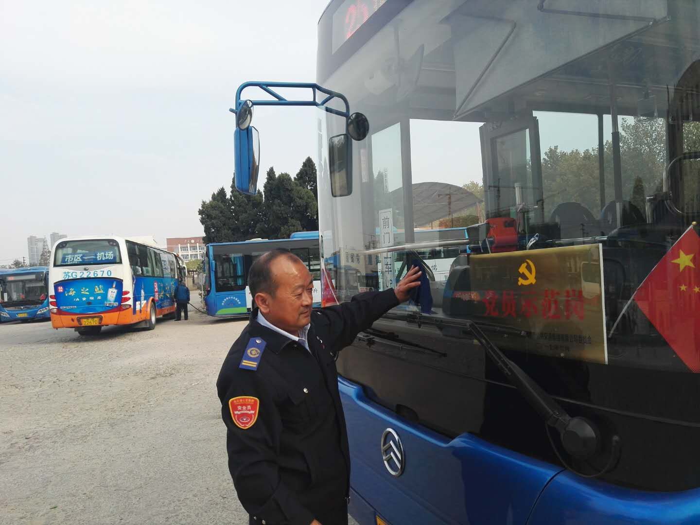 近日,公交海州公司為3名黨員駕駛員掛上公交集團(tuán)授予的“黨員示范崗”銅牌。7路線黨員駕駛員李衛(wèi)民接到新的“黨員示范崗”銅牌時(shí),立即用抹布將其擦拭干凈,并擺放在車頭規(guī)定的位置。他深深地懂得,這不僅僅是一個(gè)銅牌,更是一份責(zé)任、一份擔(dān)當(dāng)。對(duì)于他來(lái)說(shuō),被集團(tuán)授予 “黨員示范崗”既是榮譽(yù)也是鞭策,因?yàn)樯磉叺耐露荚诳粗?wù)的廣大乘客也在看著他,他必須要將一名黨員承諾,全部轉(zhuǎn)化為提升公交服務(wù)品質(zhì)、打造優(yōu)秀公交形象的實(shí)際行動(dòng),做到熱情服務(wù),吃苦在前,享受在后,無(wú)私奉獻(xiàn),讓黨徽的光芒照耀車廂,將愛心和暖流傳遞給每一位乘客。同時(shí)掛牌的24路線黨員楊海軍和25路線劉軍也表示:“公交車每天要迎送數(shù)以萬(wàn)計(jì)的乘客,我們把每位乘客當(dāng)成親人,才能得到乘客的認(rèn)可,我們要讓群眾從身邊一個(gè)個(gè)鮮活的黨員身上看到黨的先進(jìn)性,感受到黨的溫暖”。