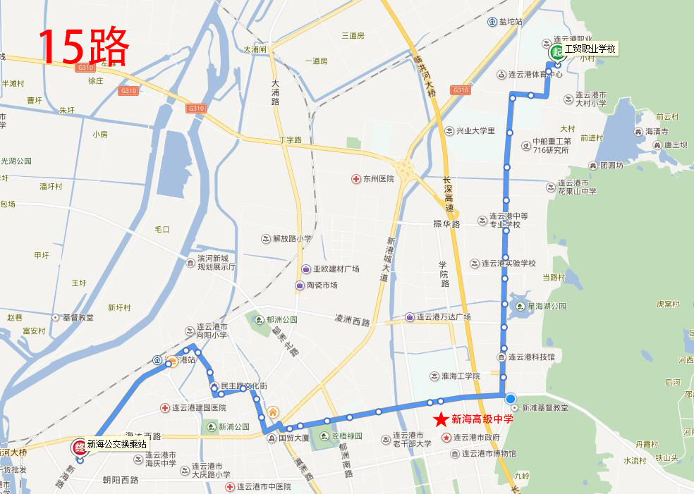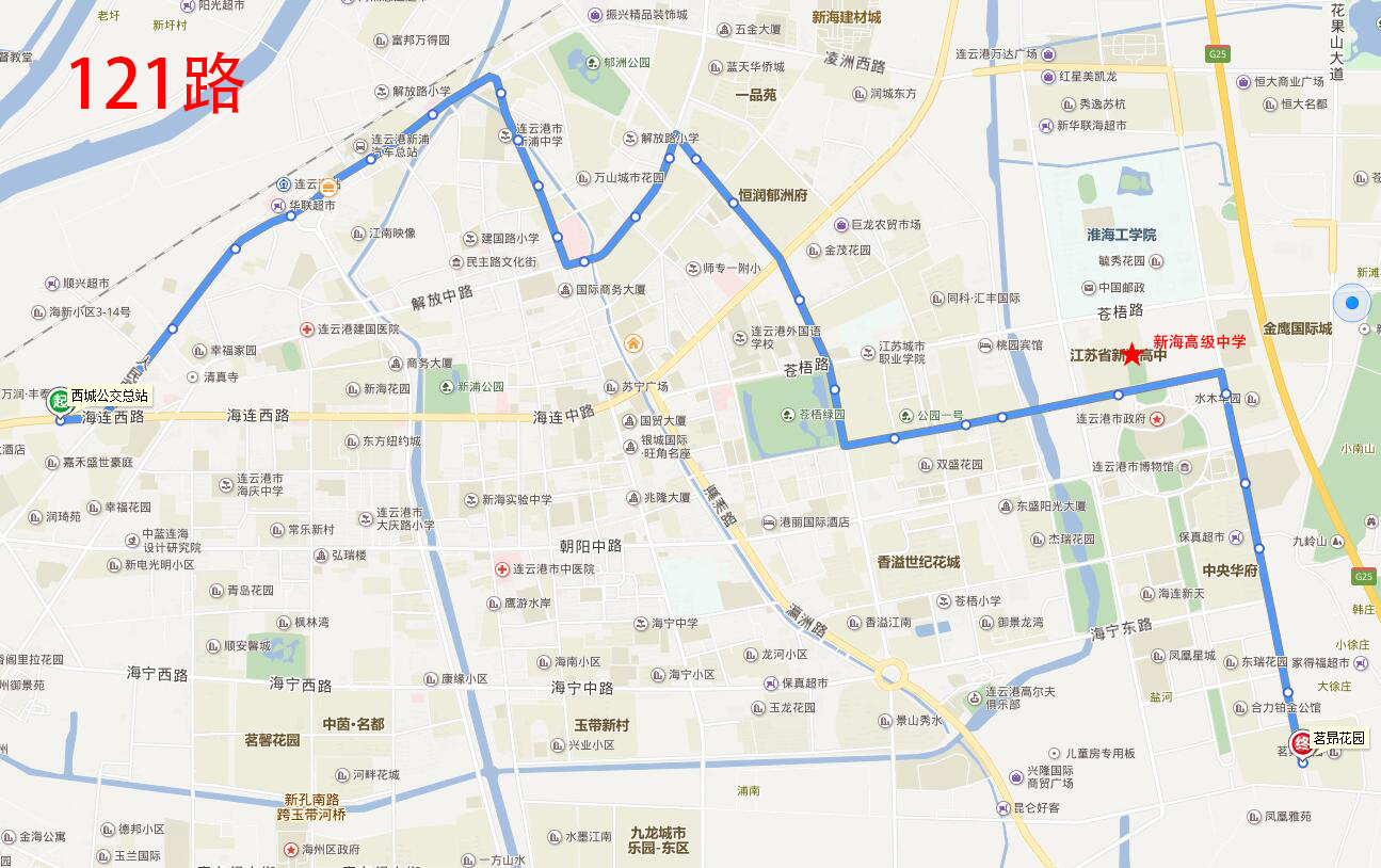 新海高級(jí)中學(xué):地址在海州區(qū)蒼梧東路58號(hào),附近途徑公交線路有3路、5路、10路、15路、24路、51路、121路、游2路;