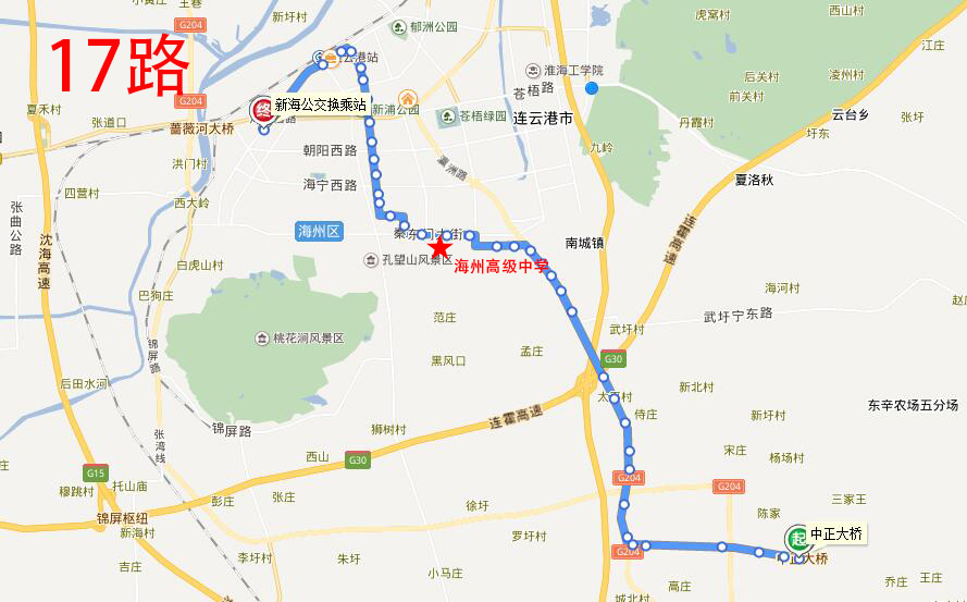 海州高級(jí)中學(xué):地址在海州開(kāi)發(fā)區(qū)青圃路1號(hào),附近途徑公交線路有17路、20路、游1路;
