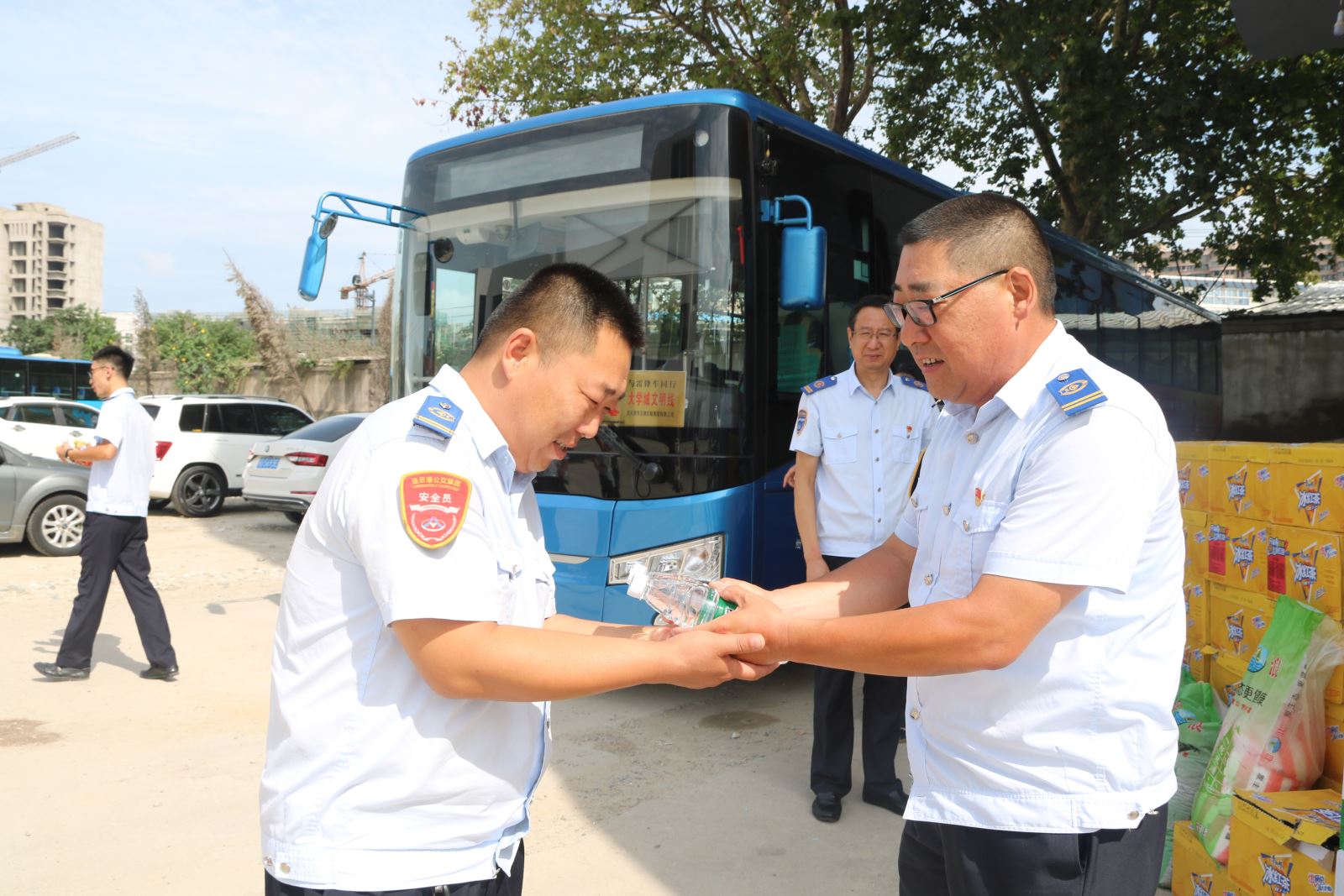7月27日上午,公交集團(tuán)黨委書記、總經(jīng)理劉佃華率班子成員走基層,來到龍河廣場(chǎng)站臺(tái)、西城公交總站、華威停車場(chǎng)、大浦保養(yǎng)廠和東部公交停車場(chǎng),為高溫酷暑中堅(jiān)守崗位的一線職工送去了110箱冰紅茶、175箱礦泉水、620斤綠豆和180斤白糖等防暑降溫用品,讓廣大職工感受到夏日里的絲絲清涼和公交集團(tuán)黨委的深切關(guān)懷。