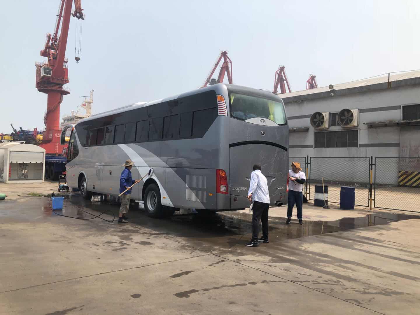 臺風(fēng)過后,港口地表溫度達(dá)50多度,公交集團(tuán)汽服公司因承接了宇通近100臺車輛的出口清洗檢驗(yàn)任務(wù),面對任務(wù)重、時(shí)間緊、標(biāo)準(zhǔn)高的出口要求,為了能按時(shí)保質(zhì)完成此項(xiàng)任務(wù),公交汽服的港口工作人員頂著高溫,穿戴整齊,服從指揮,按部就班的執(zhí)行清洗檢驗(yàn)工作,盡管汗珠浸濕了衣背,高溫天氣并不影響工作人員的工作熱情和工作態(tài)度。公司維修部的人員也在抓緊時(shí)間,緊鑼密鼓搶修出現(xiàn)問題的公交車輛,汗水濕透了他們的衣裳,雖然辛苦,但看到公交車又能為乘客的出行提供便利,他們的心里別提有多開心了。