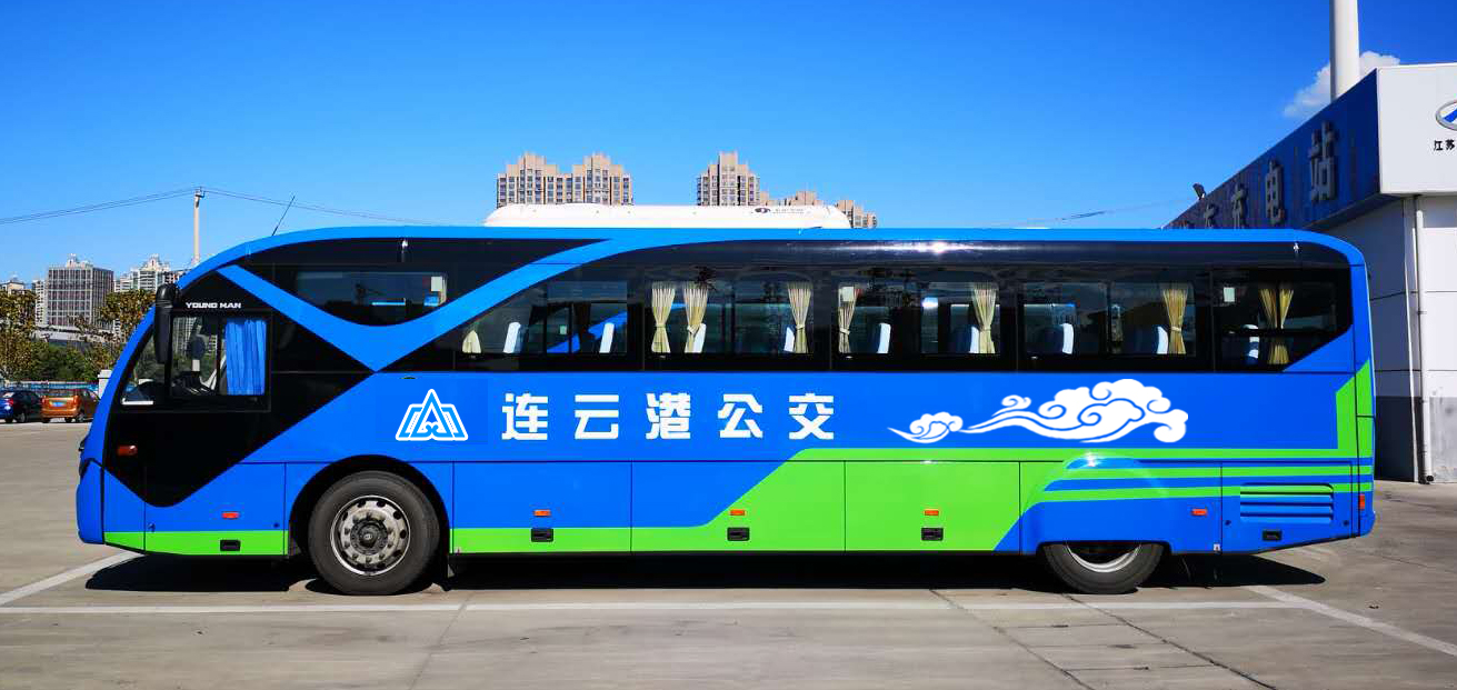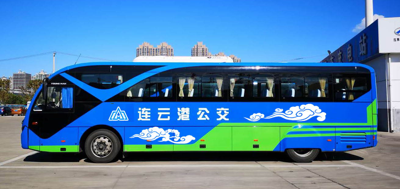 連云港公交車身整體為藍(lán)色,代表著大海和廣闊的天空,綠色造型代表海鷗,翱翔在藍(lán)天和大海之上;綠色凸顯清新和盎然生機(jī),也表達(dá)了綠色公交的發(fā)展理念。祥云是中國(guó)傳統(tǒng)的吉祥圖案。碧海藍(lán)天、海鷗祥云相得益彰,勾勒出一幅“海鷗飛處祥云追”的祥和畫卷。也體現(xiàn)出現(xiàn)代公共交通服務(wù)民生的和諧美好。