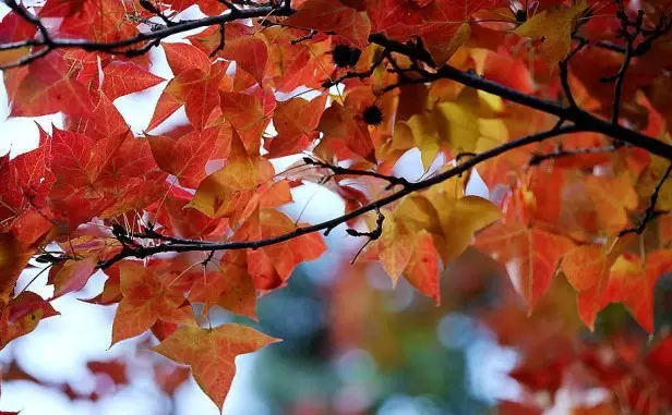楓葉呈現(xiàn)多姿多彩的顏色,淡黃的、褐黃的、火紅的、橘紅的,紅黃綠相間,點綴湖畔、山 。當(dāng)楓葉飄落在清澈的岸邊,宛如天然生成的水晶標(biāo)本。