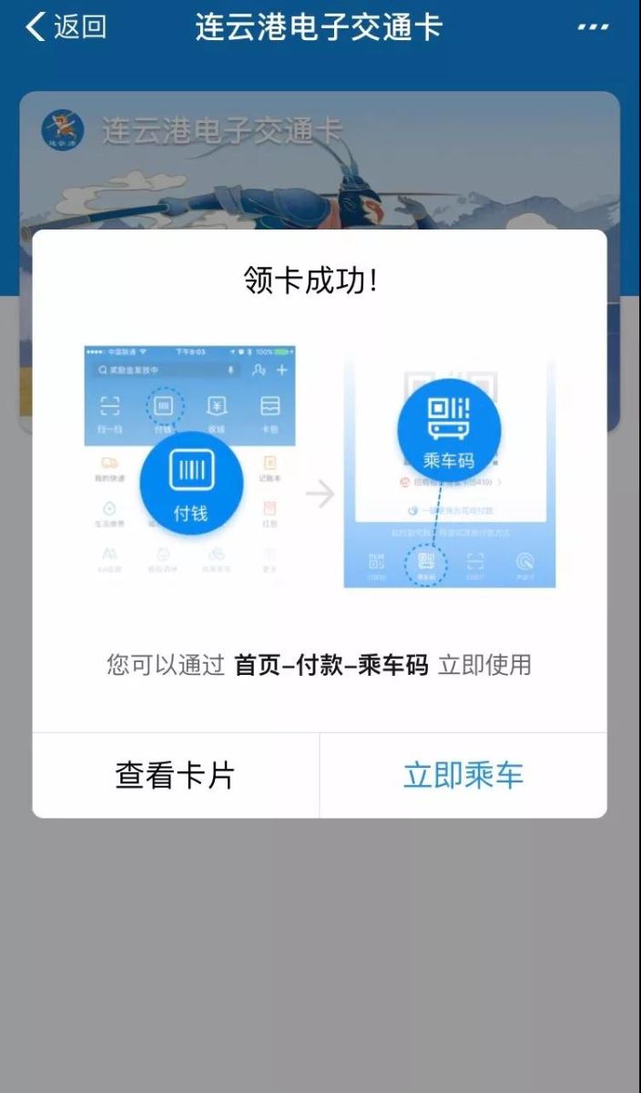 點(diǎn)擊“立即領(lǐng)卡”后,便可使用乘車碼掃碼乘車。