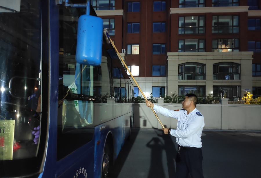 深夜,值班的公交人沒有絲毫倦意,巡視場站,一輛輛檢查停放在場站里的公交車是否關(guān)好電源、門窗,拔出鑰匙,檢查輪胎、發(fā)動機,用滿身的汗水和滿手的油漬,胳膊、腿上被蚊子“親吻”過的痕跡總是讓他們的嚴肅的臉上多了幾分可愛,也是因為如此,才保障了新的一天每輛公交車正常運行。