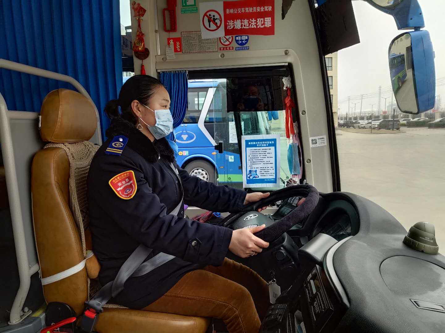 雖然從事公交駕駛崗已有5個年頭,但今年的疫情,還是讓她家人為她感到擔(dān)憂。每天駕駛著公交車穿梭在城區(qū)至徐圩石化基地,即使自己和乘客都戴著口罩,但頻繁接觸乘客,心里多少還是有些顧慮。“在駕駛崗位上是存在一定的風(fēng)險,但是正值疫情防控的關(guān)鍵時期,公司那么多同事仍堅守崗位,保障市民安全出行,作為集體中的一份子,我也應(yīng)該站出來,相互鼓勵,做出表率。”這是倪英平勸慰家人的話,也是她克服心理障礙,自我鼓勵的話。
