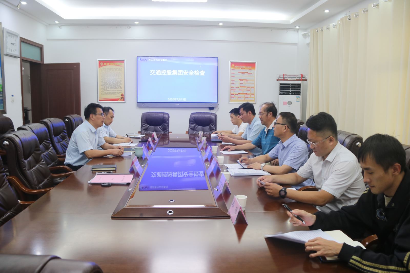 2020年7月16日下午,交控集團副總經(jīng)理孫超帶領安監(jiān)部部長茅紅兵一行七人到公交集團督查貴州安順公交車墜湖事件發(fā)生后,公交集團安全生產(chǎn)自查自糾工作開展情況及防控措施落實情況,公交集團黨委書記、總經(jīng)理周文君、分管安全副總經(jīng)理王學兵、安全保衛(wèi)部部長于亮陪同檢查。